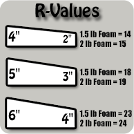 - Foam Density: The higher the foam weight the denser the foam which will give greater strength. 1 lb foam will hold 40-45 lbs of weight, 1.5 lb foam will hold 70-80 lbs of weight and the 2 lb foam will hold over 100 lbs. The thicker (taper) the cover the greater the weight bearing as well. Example: 6″ to 4″ taper with 2 lb foam will hold 250 lbs+.